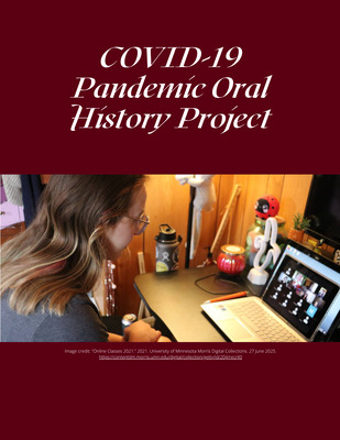 The purpose of the HIST 2005 mini-project oral history of the COVID-19 pandemic is two-fold: First, it presents an opportunity to put into practice the key methods of oral history, including project design, interviewing, preservation, and dissemination. Second, it provides documentation (to the University of Minnesota Morris Archives) of a momentous time in global history from a local perspective. To that end, the interviews will address the perspectives and diverse personal experiences of Minnesotans who were teenagers during the early days of the pandemic. Topics may include the initial lockdown, social isolation, online schooling and other educational effects, social responses narrators encountered, health fears and impacts, emotional outcomes and mental health, and work. How did this extraordinary time shape the ordinary lives of our storytellers going forward?
