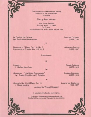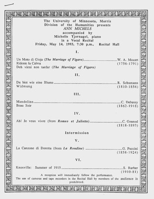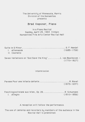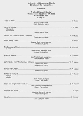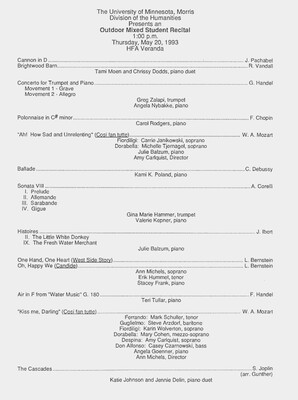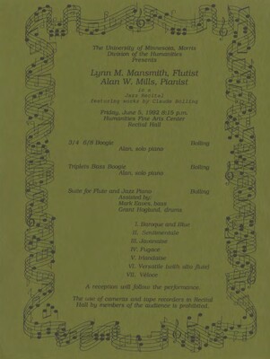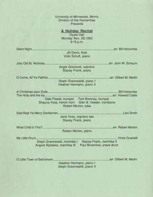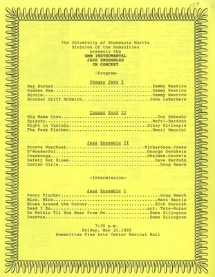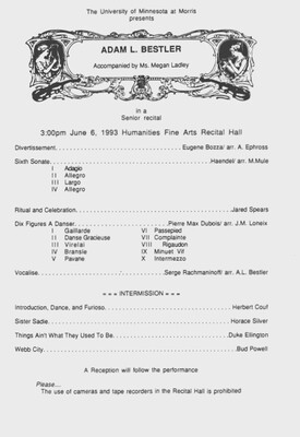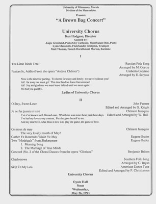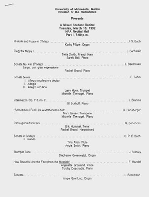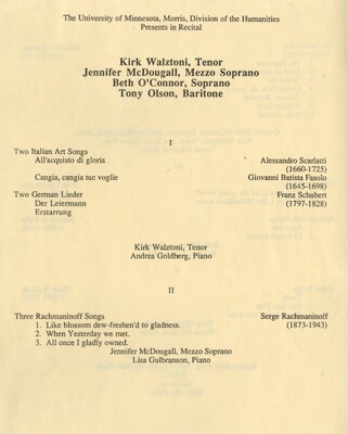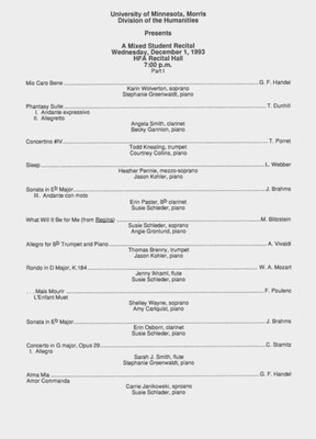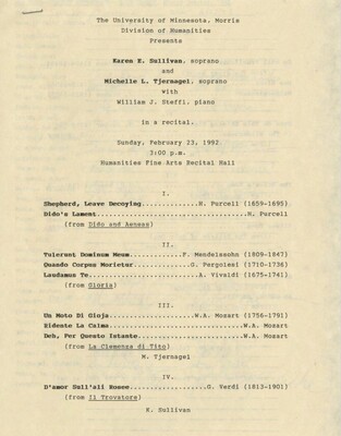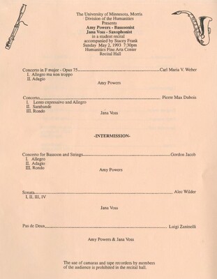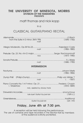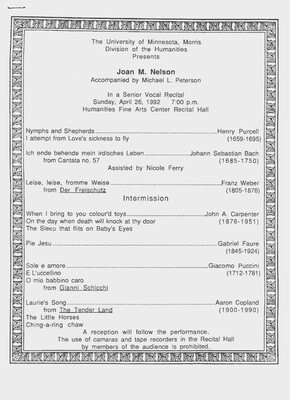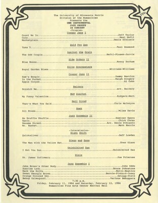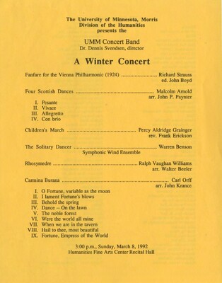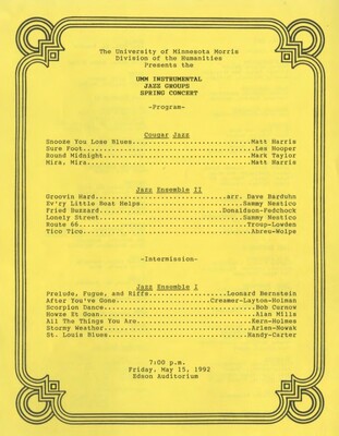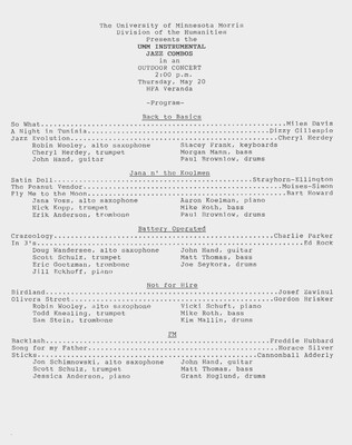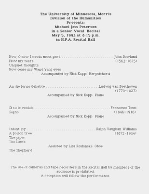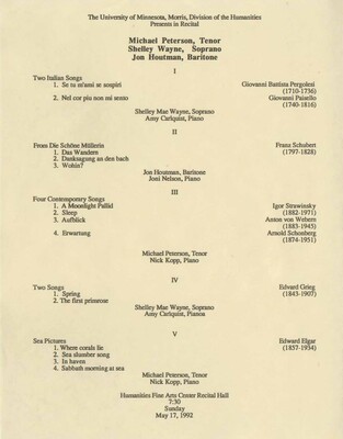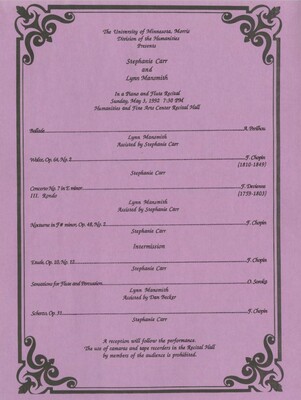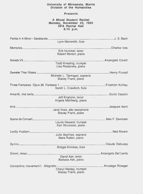 Programs from Music Discipline events at the University of Minnesota Morris.