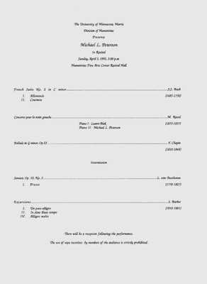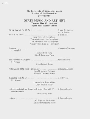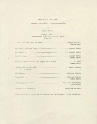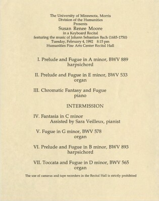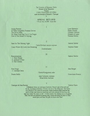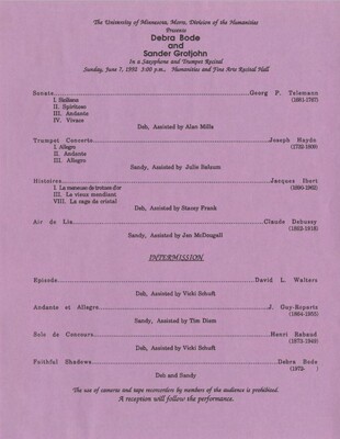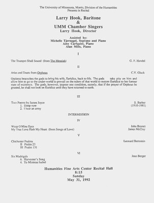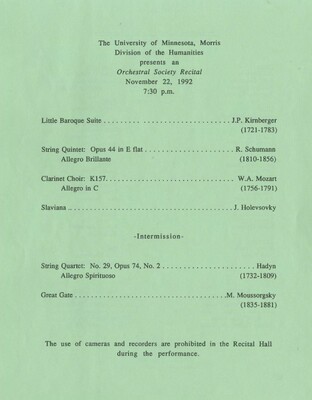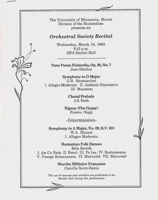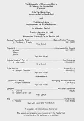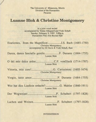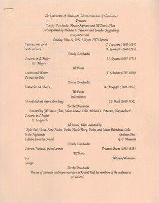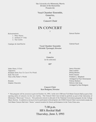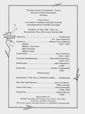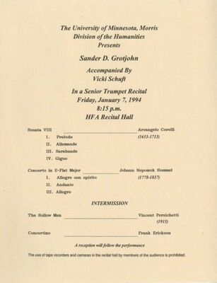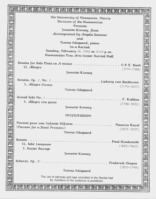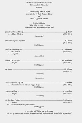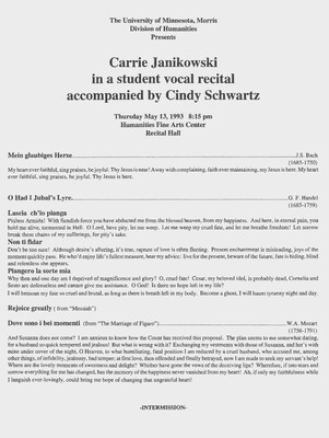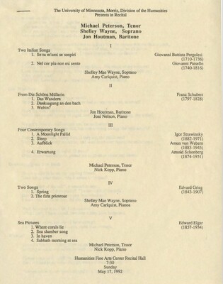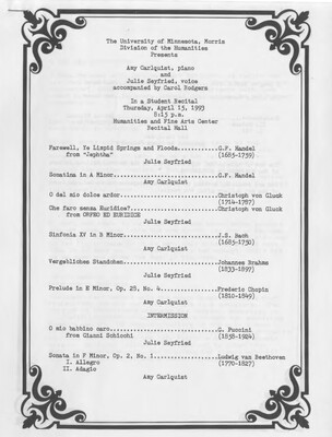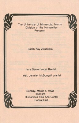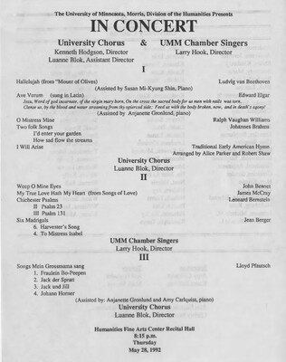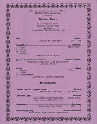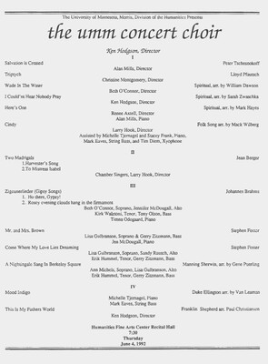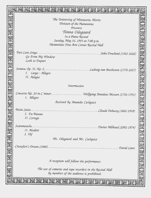 Programs from Music Discipline events at the University of Minnesota Morris.